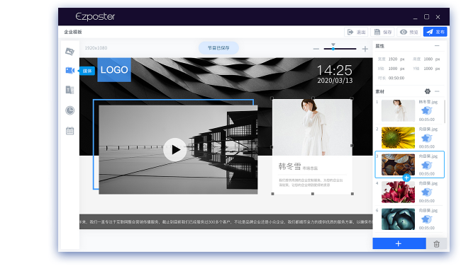 基于局域網(wǎng),是為中小企業(yè)量身定制的輕應(yīng)用信息發(fā)布管理軟件,即裝即用,方便簡單;高品質(zhì)內(nèi)容,五分鐘制作;區(qū)域設(shè)備,一鍵發(fā)布,省去部署、培訓(xùn)及維護成本,廣泛適用于小型餐飲、政企、展覽展示、酒店、商場、電影院等場景。